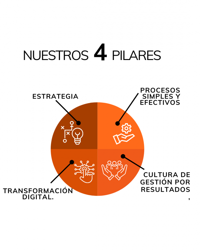 Nos mueve la generación de valor tangible para nuestros clientes. Los acompañamos para que su gestión empresarial esté plenamente alineada con su proyección estratégica, lo cual logramos a través de nuestros cuatro pilares, que integran: